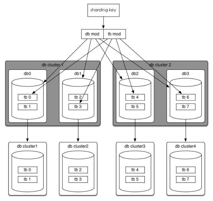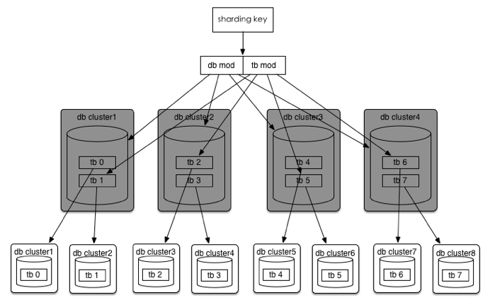 Sharding可简单定义为将大数据库分布到多个物理节点上的一个分区方案。每一个分区包含数据库的某一部分,称为一个shard,分区方式可以是任意的,并不局限于传统的水平分区和垂直分区。 一个shard可以包含多个表的内容甚至可以包含多个数据库实例中的内容。每个shard被放置在一个数据库服务器上。一个数据库服务器可以处理一个或多个shard的数据。系统中需要有服务器进行查询路由转发,负责将查询转发到包含该查询所访问数据的shard或shards节点上去执行。