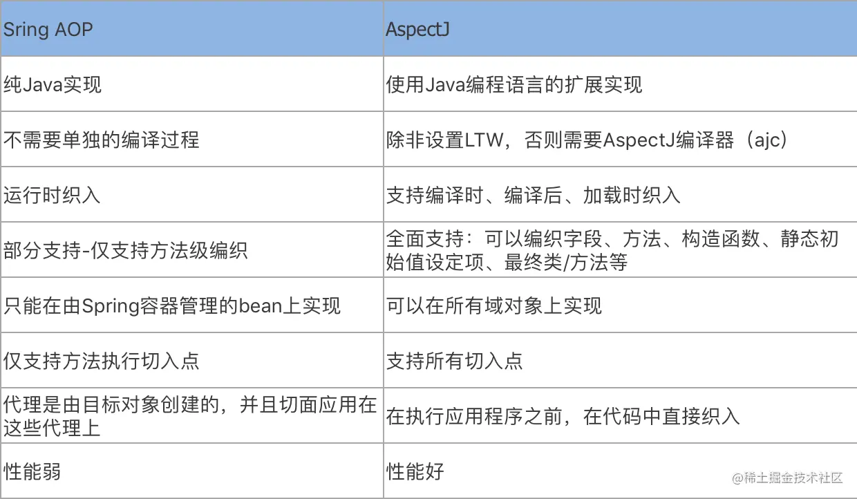 2.3 Spring AOP与AspectJ 对比