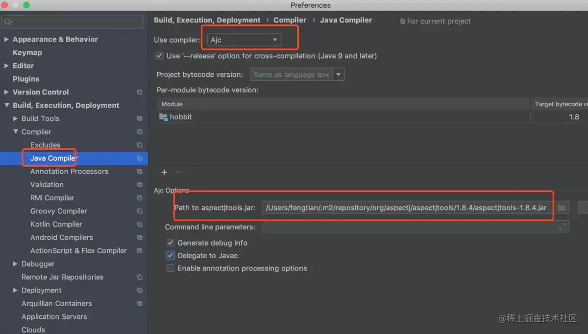 Java Compiler -> User compiler 选择Ajc,同时设置aspectjtools.jar