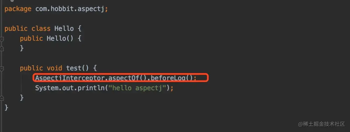 System.out.println("hello aspectj");