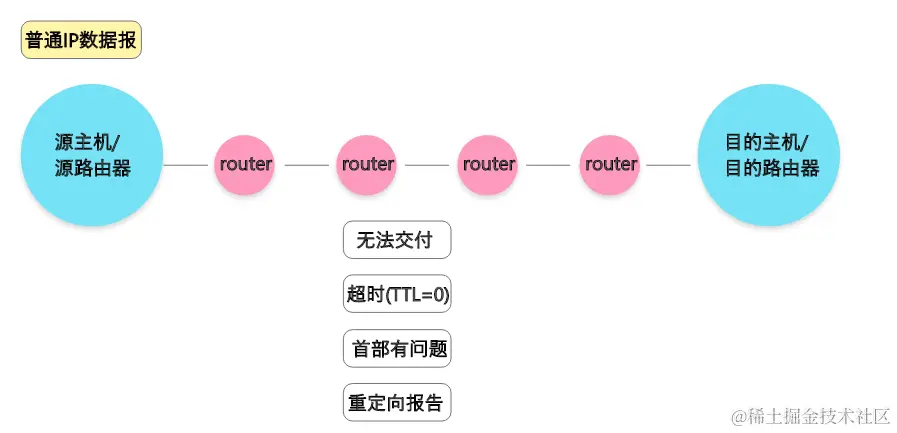 差错报告:当路由器检测出源端的IP数据报出现问题,会根据这个数据报组装成一个ICMP差错报告报文