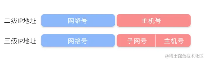 而子网划分和构成超网类似于"减少内部碎片",充分利用分配到的网络里的每一个IP地址,比如一家公司的业务需求是三个网络,每个网络里面只有两台,没有子网划分技术之前需要申请三个C类网络去组网,现在用一个网络号去做子网划分就可以了