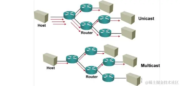 单播是一对一,组播是一对特定的多个,广播是一对所有