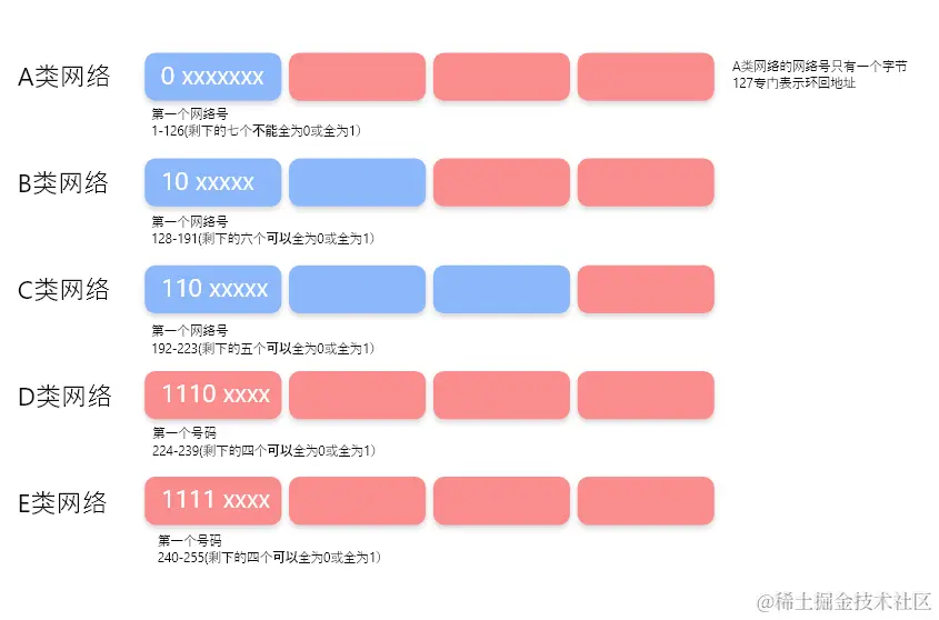 - 网络号:192.0.1~223.255.255(去掉全0)