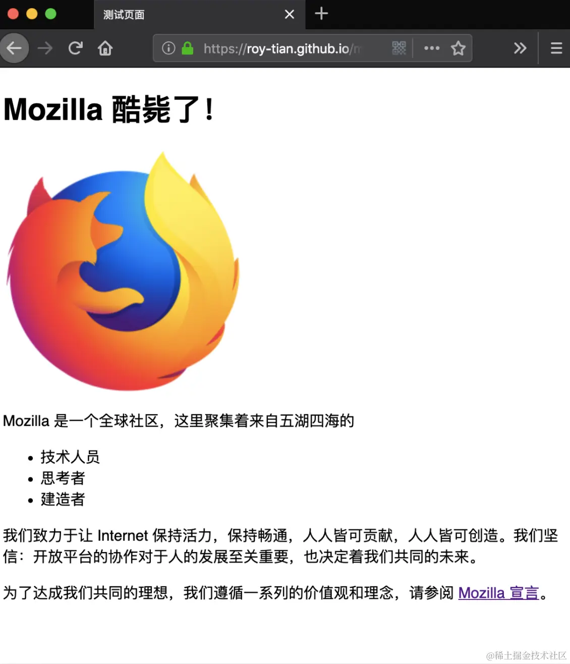 <a href="https://www.mozilla.org/zh-CN/about/manifesto/">Mozilla 宣言</a>