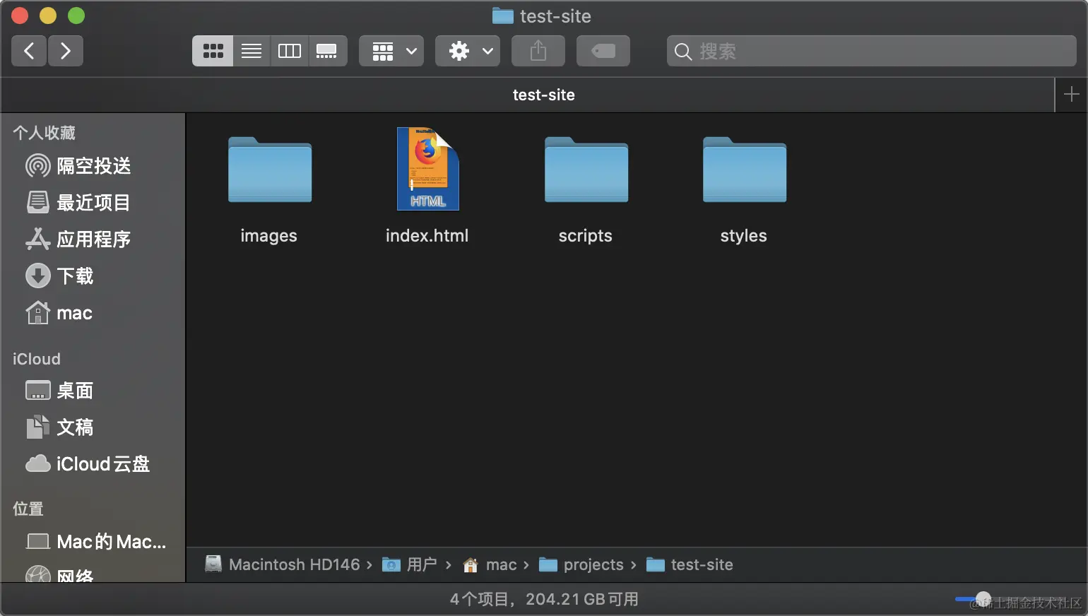 新建一个文件夹(比如 test-site),来存放第一个网站。