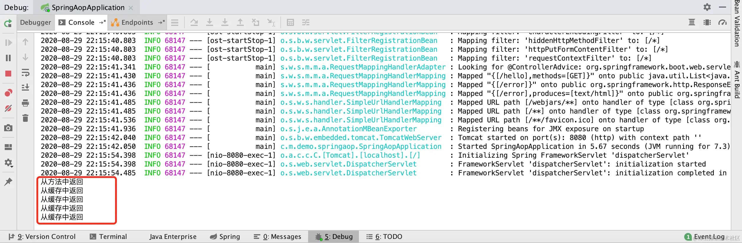 完成上面的步骤我们基于一个Spring Aop实现的缓存功能就实现了,看下面效果。