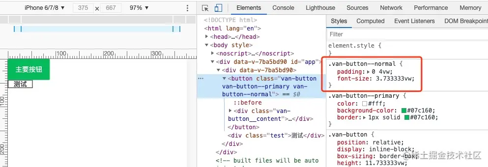 最后我们重新启动服务,看我们的样式是否已被转成vw: