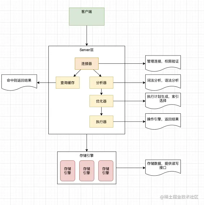 - 有权限就打开表继续执行,打开表的时候,执行器会根据表的引擎定义,使用引擎的提供的接口
