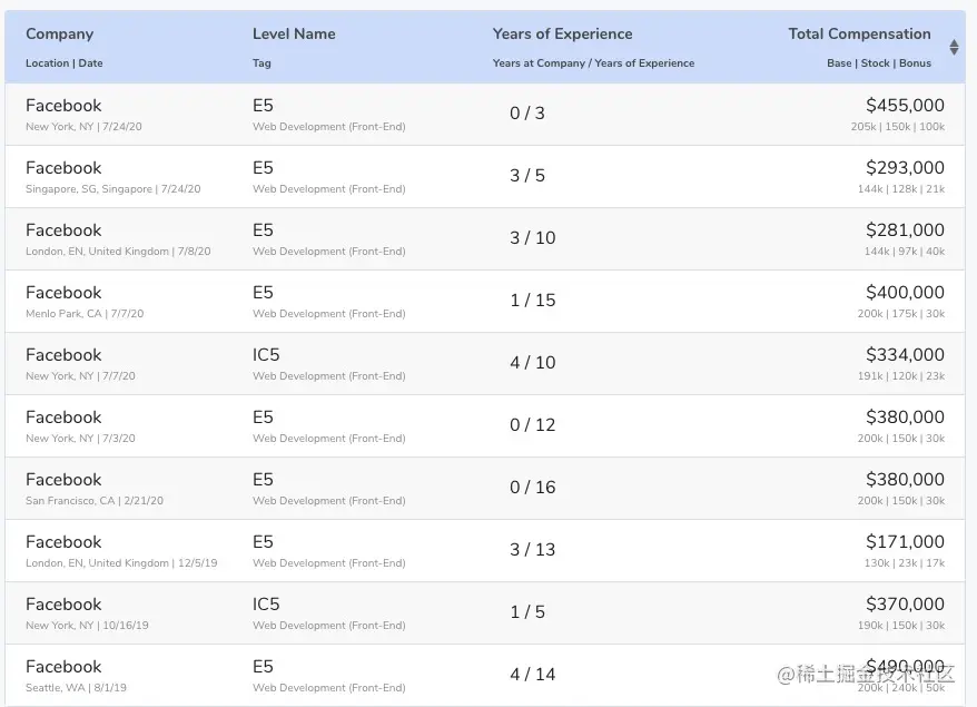 Facebook全球office薪资收入不一,这里仅仅看湾区情况
