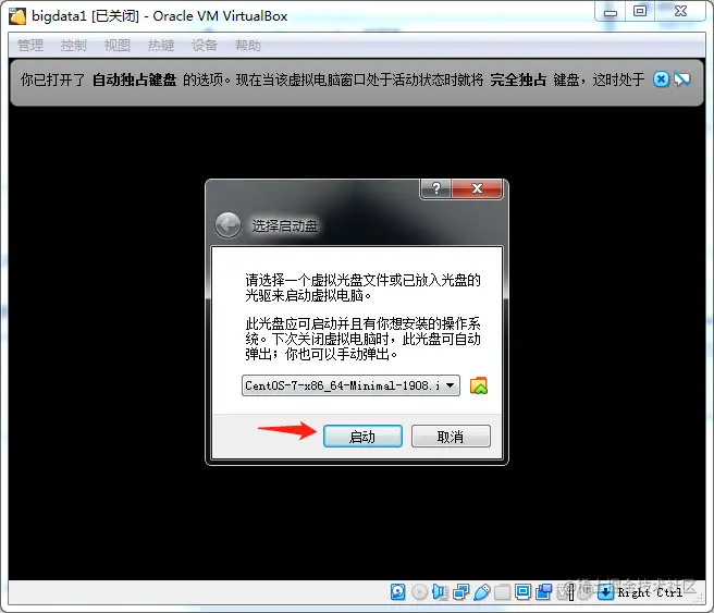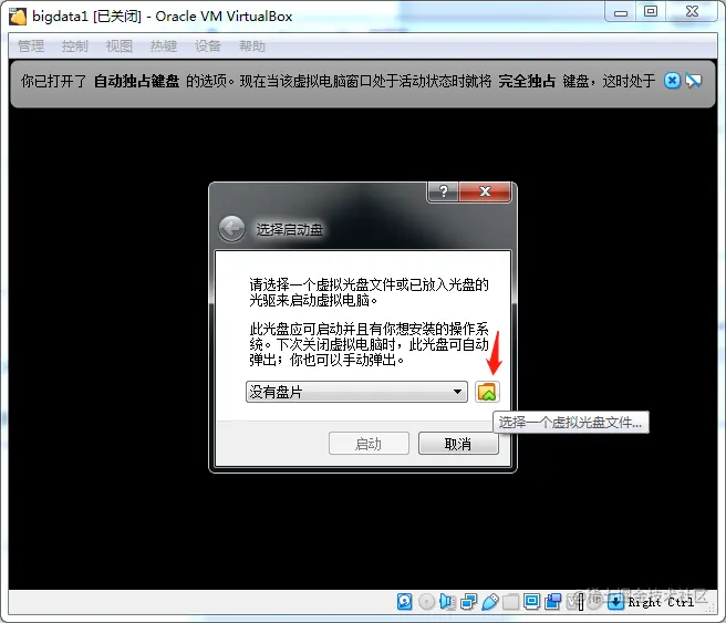 虚拟机创建好之后,启动,会提示你选择操作系统镜像文件