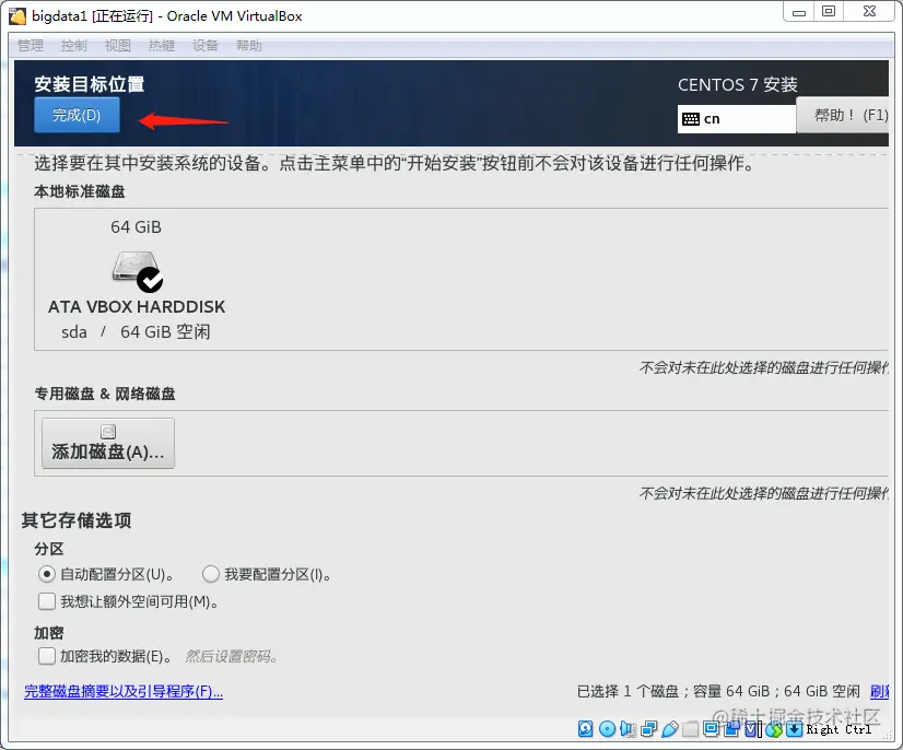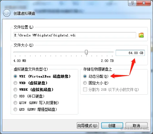 勾选了动态分配后,虽然我给了虚拟硬盘64G 的空间,但是并不会在本地立马占用 64G 的空间,而是用多少占多少