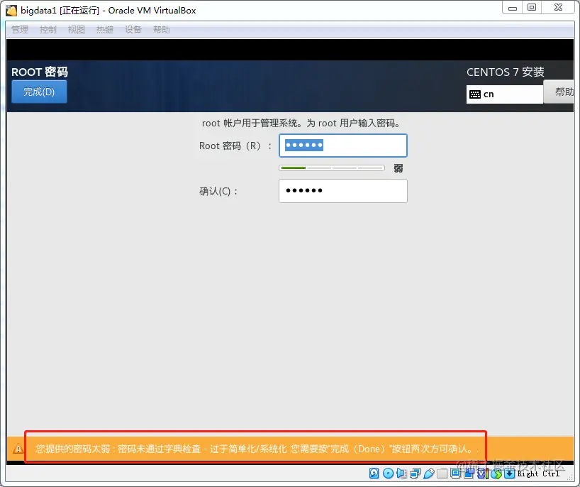 设置root密码,密码太弱的话,需要点两次完成