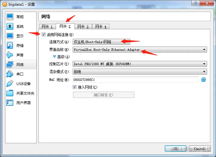开启 Host-Only 模式,这样物理机可以直接访问虚拟机