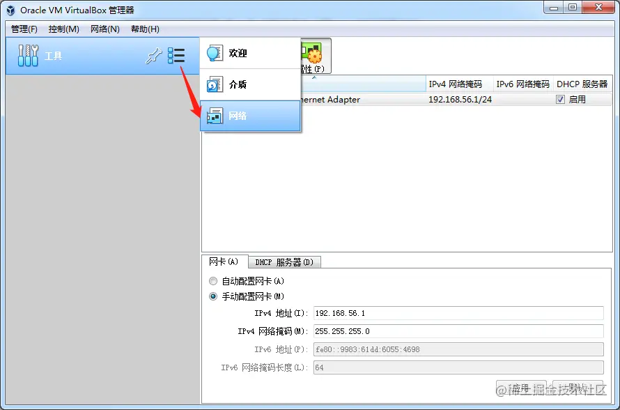 配置 VirtualBox Host-Only Ethernet Adapter