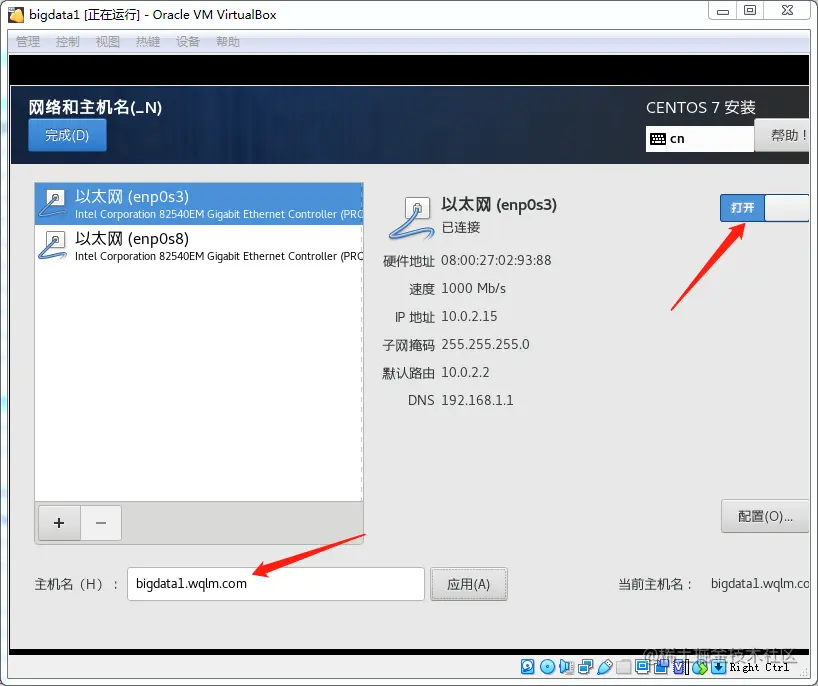 ifup 网卡名,如 enp0s8