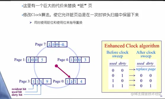 - 对时钟页面置换算法加强