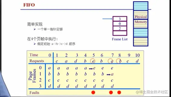 - 选择在内存中驻留时间最长的页面。