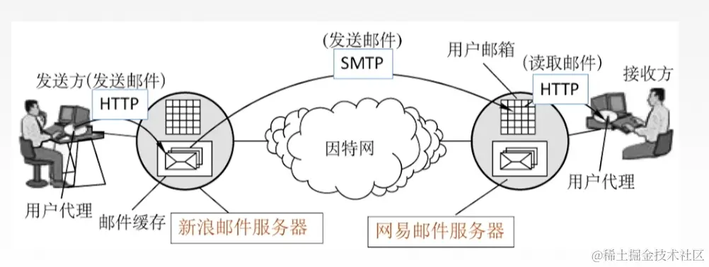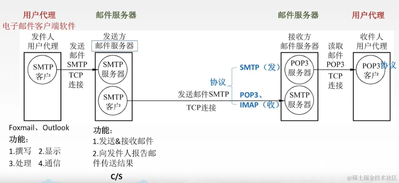 负责发送邮件的SMTP进程就是SMTP客户,负责接收邮件的SMTP就是SMTP服务器