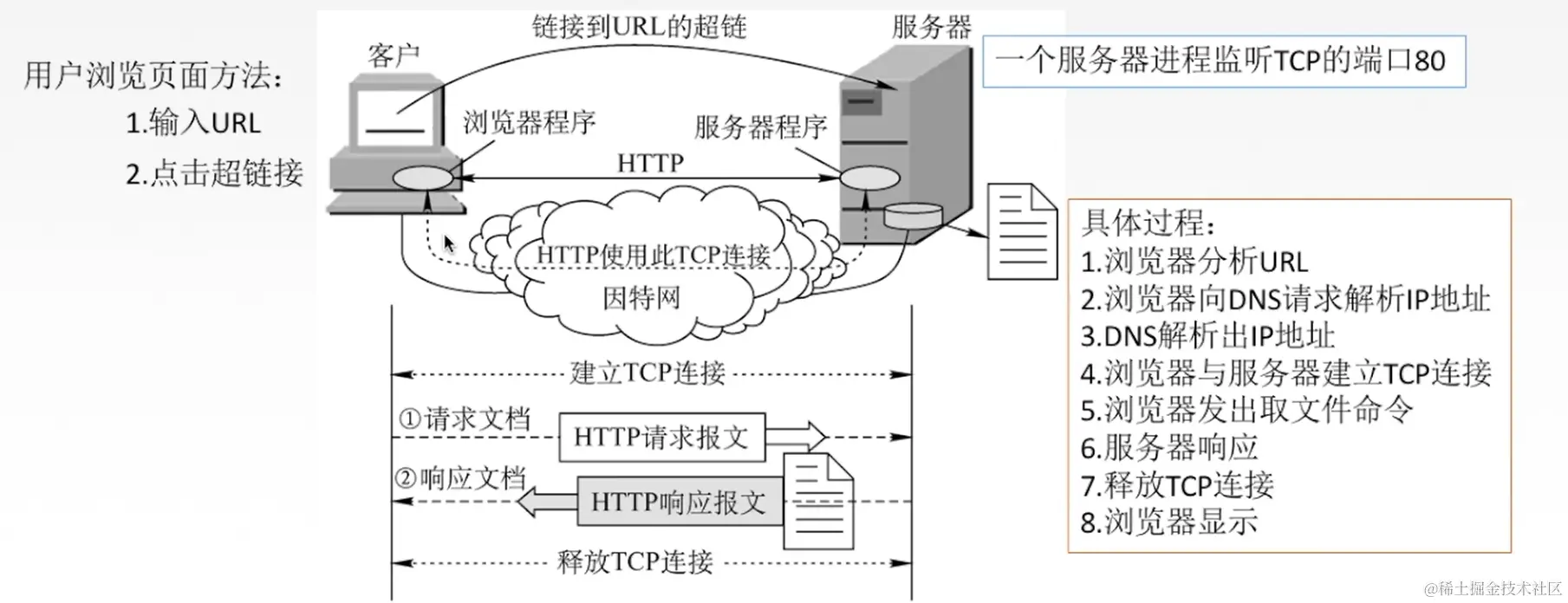 用户通过点击超链接获取资源,这些资源通过超文本传输协议(HTTP)传送给使用者