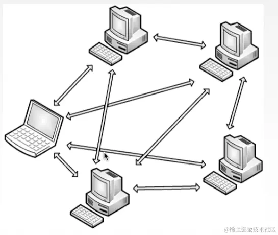任意端系统/节点之间可以直接通讯