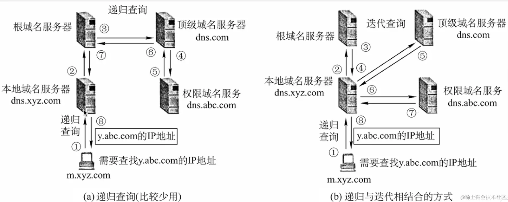 - 本地域名服务器:当一个主机发出DNS查询请求时,这个查询请求报文就发给本地域名服务器