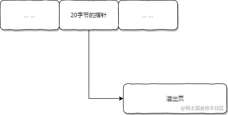 Dynamic行格式提供与Compact行格式相同的存储特性,但对于长可变长度列值(对于VARCHAR,VARBINARY和BLOB和TEXT类型)行溢出采用了完全的行溢出方式。如图所示,在数据页的某行记录里的某个大可变长度列值只存放20个字节的指针,实际的数据都存放到外部溢出页中。