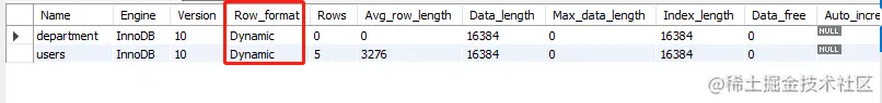 InnoDB存储引擎提供了Redundant、Compact(Mysql5.1 默认)、Dynamic(Mysql5.7 默认)、Compressed四种格式来存放行记录,可以使用show table status;查看表中的行记录格式。
