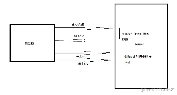 - 浏览器中收到请求响应的时候会解析响应头,然后将sid保存在本地cookie中,浏览器在下次http请求的请求头中会带上该域名下的cookie信息,