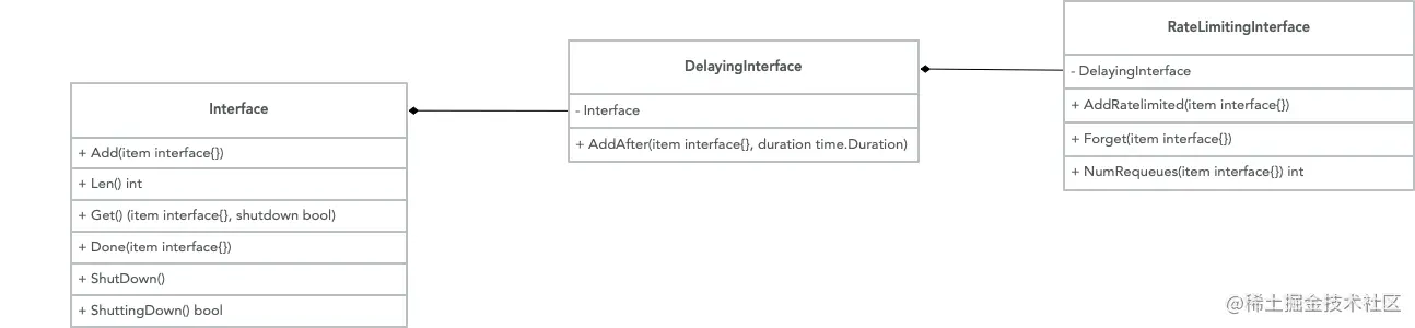RateLimitingQueue以延迟队列为基础,实现三种不同的限速算法: