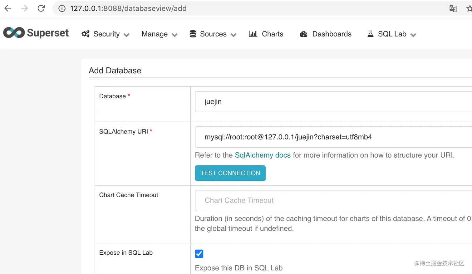 格式为SLQAlchemy URI,使用过Python的同学对这款ORM肯定不会陌生。感兴趣的可以了解一下,官方文档:www.sqlalchemy.org/。