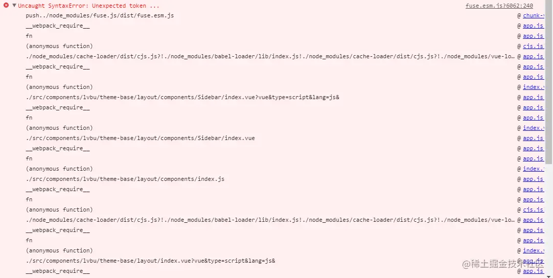 基础的 vue 项目是可以在 Chrome 49 版本和在 Firefox 52 版本正常运行的,所以怀疑是这个项目引用了不兼容的插件,这个时候得使用 排除法 了,通过报错信息提示,去到对应的文件不断删除排除对比,最终定位到只要删除了 fuse.js 的引用项目就可以正常运行,而删除 fuse.js 的引用通过测试暂时未发现有其它的问题出现,所以,这个兼容问题算是暂时得以解决。