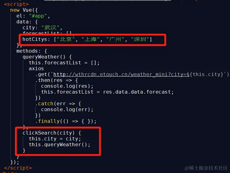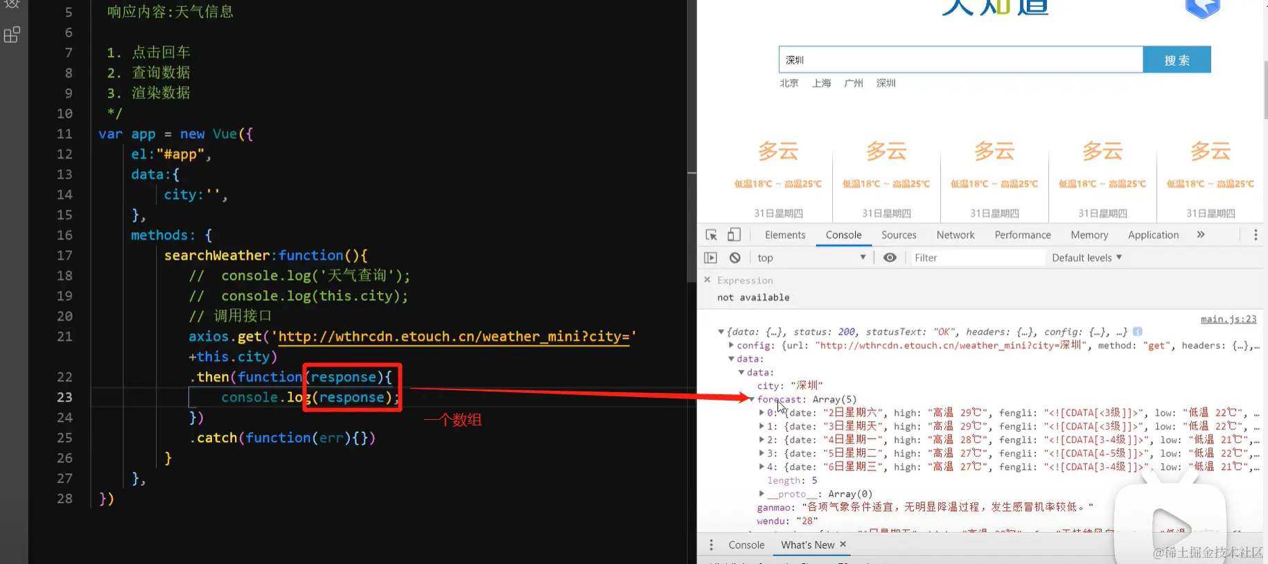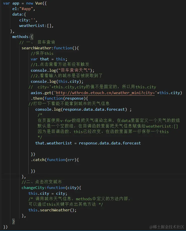 查询数据(axios接口,v-model)、渲染数据(v-for 数组 保存this为that) */