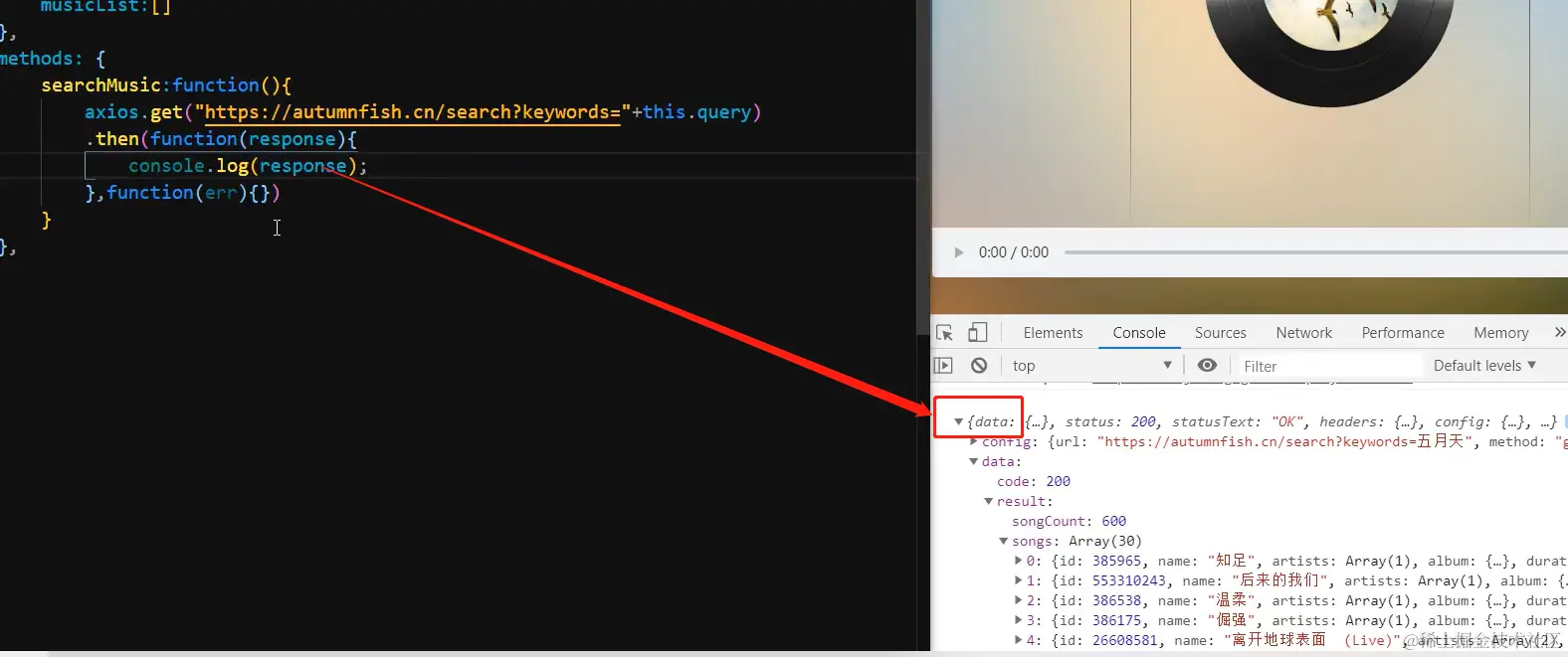 axios.get("https://autumnfish.cn/search?keywords=" + this.query).then(function(response) {