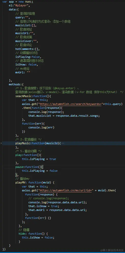 /* 1、歌曲搜索:按下回车(@keyup.enter)、