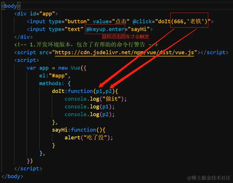 <input type="button" value="事件绑定" @dblclick="dolt">