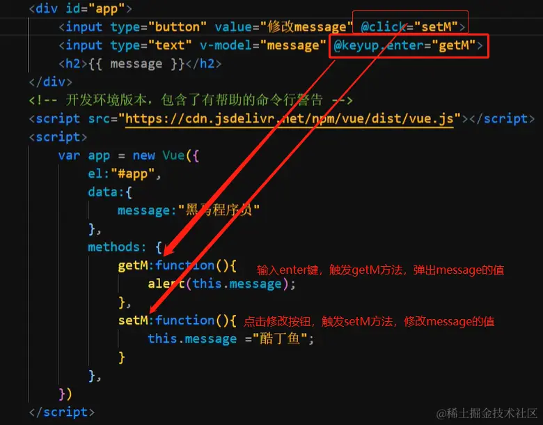<input type="button" value="事件绑定" v-on:monseenter="方法">