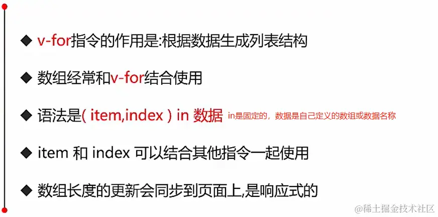 - 内容中有HTML结构会被解析为标签, v-text指令无论内容是什么,只会解析为文本