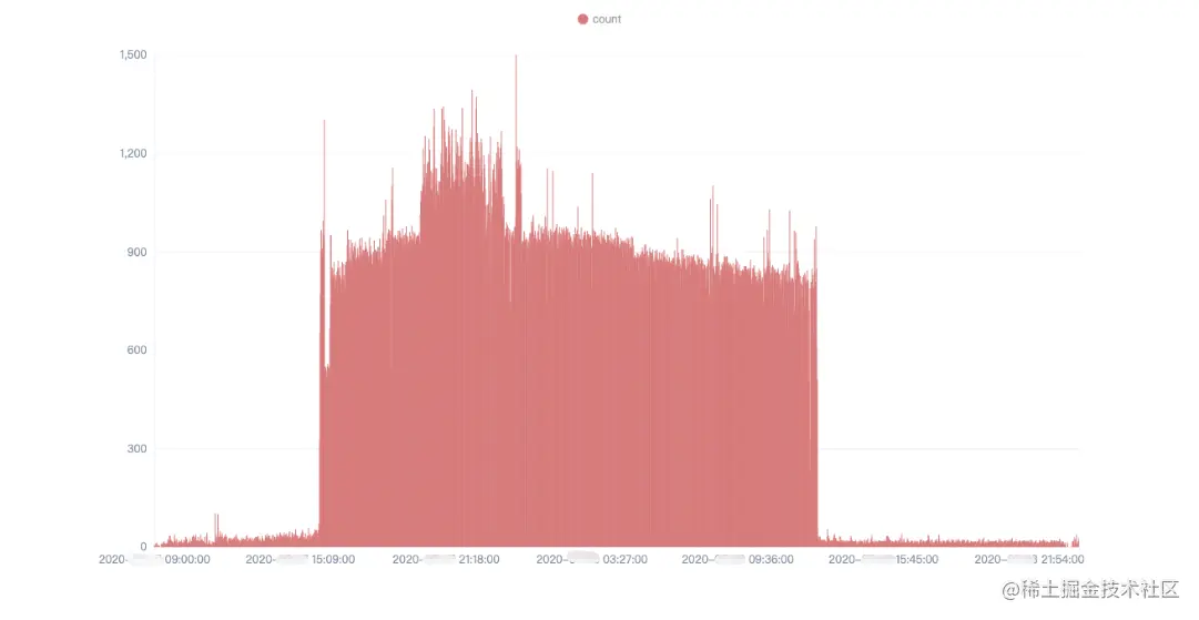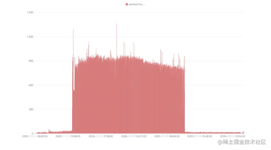 ·访问量从每分钟30-50条激增到每分钟900条,接口吞吐量接近上限;