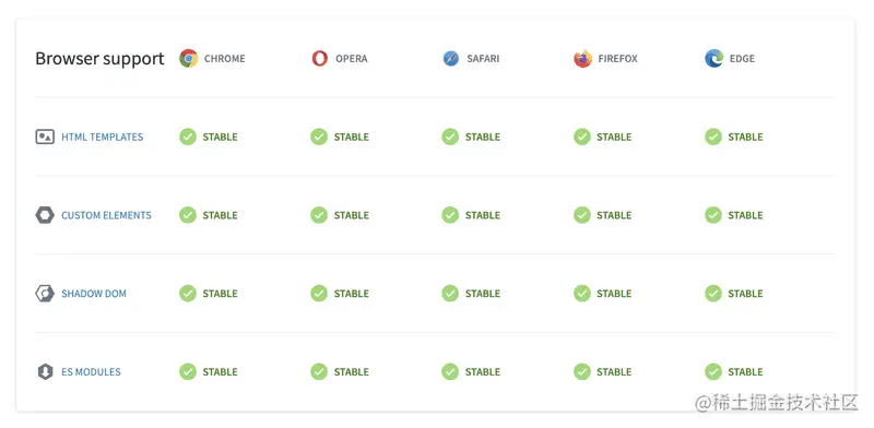 对开发者来说,好消息是最流行的浏览器都支持关键的Web Components规范。