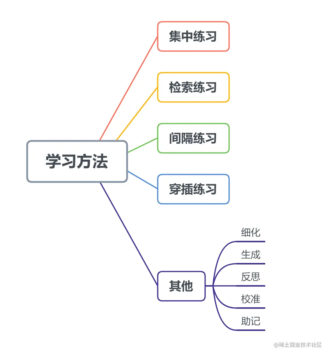 - 集中练习是低效的学习方式,并且会产生熟练的错觉。