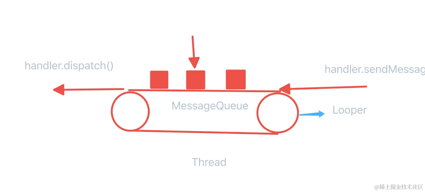Handler机制就是个典型的生产者消费者模式,只不过是 MessageQueue 的大小是无限制的。这里面有4个兄弟在处理,分别是 Handler ,Looper,MessageQueue 和 Message