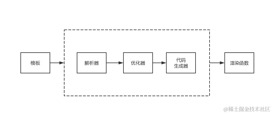 简易流程图:将模板解析成AST=>遍历AST标记静态节点=>使用AST生成渲染函数