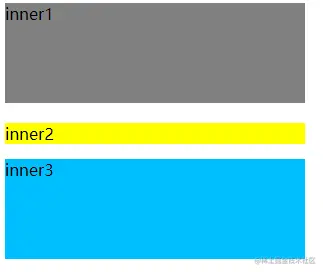 因为同级别元素之间发生了外边距塌陷,所以 inner1 和 inner2 之间的边距只有50px,(发生外边距塌陷时,取大的值)