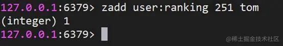 下面操作向有序集合user:ranking添加用户tom和他的分数251: