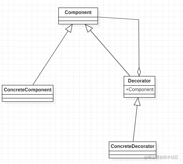 Decorator(装饰者): 该类继承或实现Component,并在类中聚合一个Component类的对象。