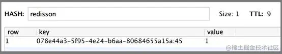 这里表面数据类型是Hash类型,Hash类型相当于我们java的 <key,<key1,value>> 类型,这里key是指 'redisson'