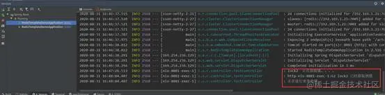 简单配置一下,此时启动应用就已经将redisson集成到了springboot中,此时的配置就是集群环境下的。如果需要单机和集群的切换,则需要引入redisson的依赖,自己编写配置类,这里为了简单,采用starter的方式集成