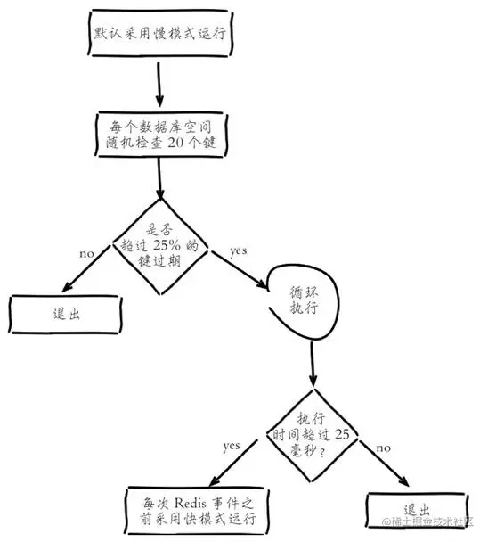 如果超过检查数25%的键过期,循环执行回收逻辑直到不足25%或运行超时为止,慢模式下超时时间为25毫秒。