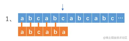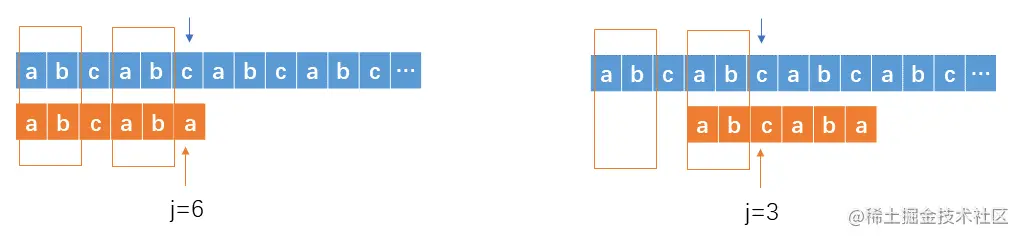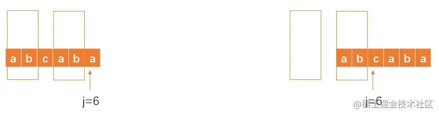当在第6个位置不匹配时,由于前面已匹配的字符串abcab